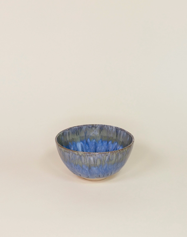 • Tigela cerâmica azul e cinza efeito vítreo