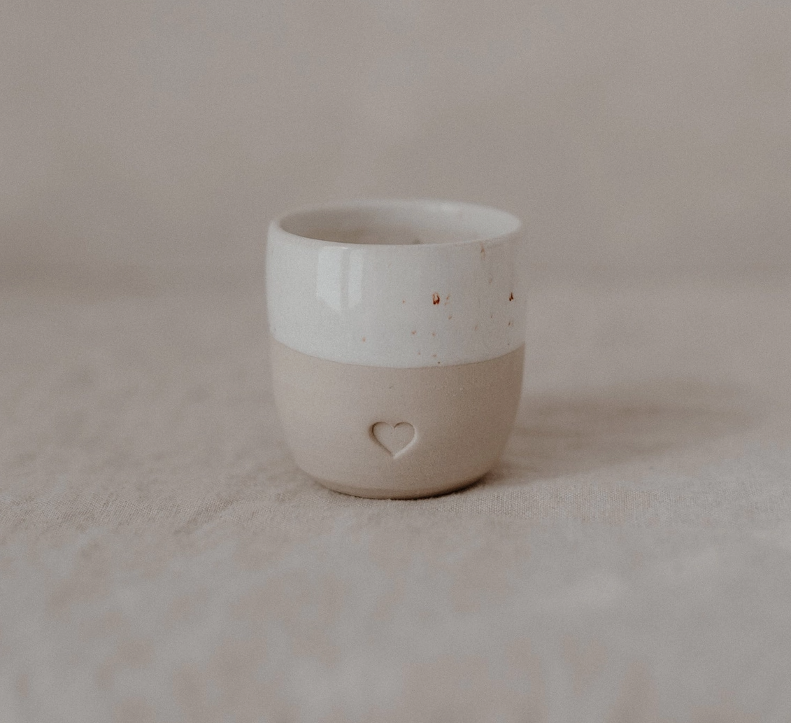 Este copo torna ainda mais fácil desfrutar de uma curta pausa. Com a nossa nova taça de café expresso heart disfrute do seu espresso, espresso duplo ou macchiato. O presente perfeito para todos os amantes de café. Produzidos numa pequena olaria de Portugal que faz amorosamente estas maravilhosas chávenas. As nossas canecas fazem os corações bater mais rápido para aqueles que amam a individualidade do barro e do vidrado, porque cada caneca individual tem o seu próprio toque único.