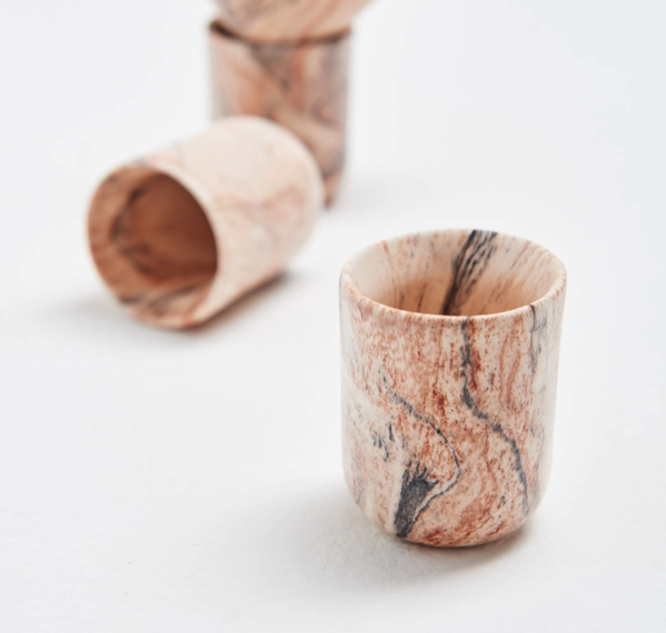Esta caneca elegante e única foi concebida para adicionar um toque de luxo à sua rotina diária. O efeito de mármore italiano na caneca confere-lhe um visual sofisticado e elegante, tornando-o o complemento perfeito para a sua casa ou escritório. Peça artesanal em cerâmica.