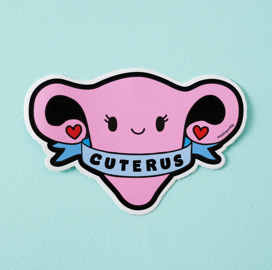 • Autocolante de útero cor-de-rosa com faixa azul e texto