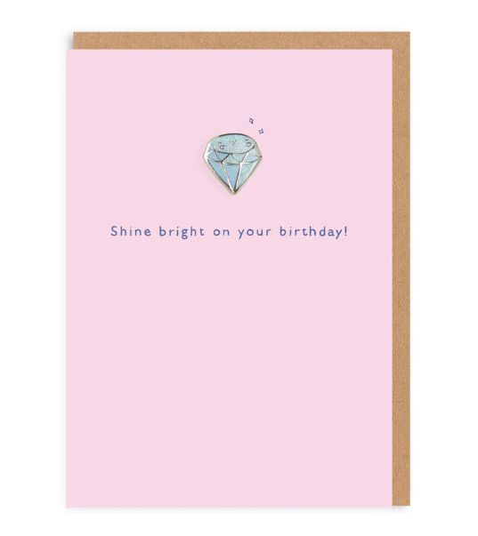 DIAMOND SHINE BRIGHT ON YOUR BIRTHDAY ENAMEL PIN GREETING CARD OHH DEER