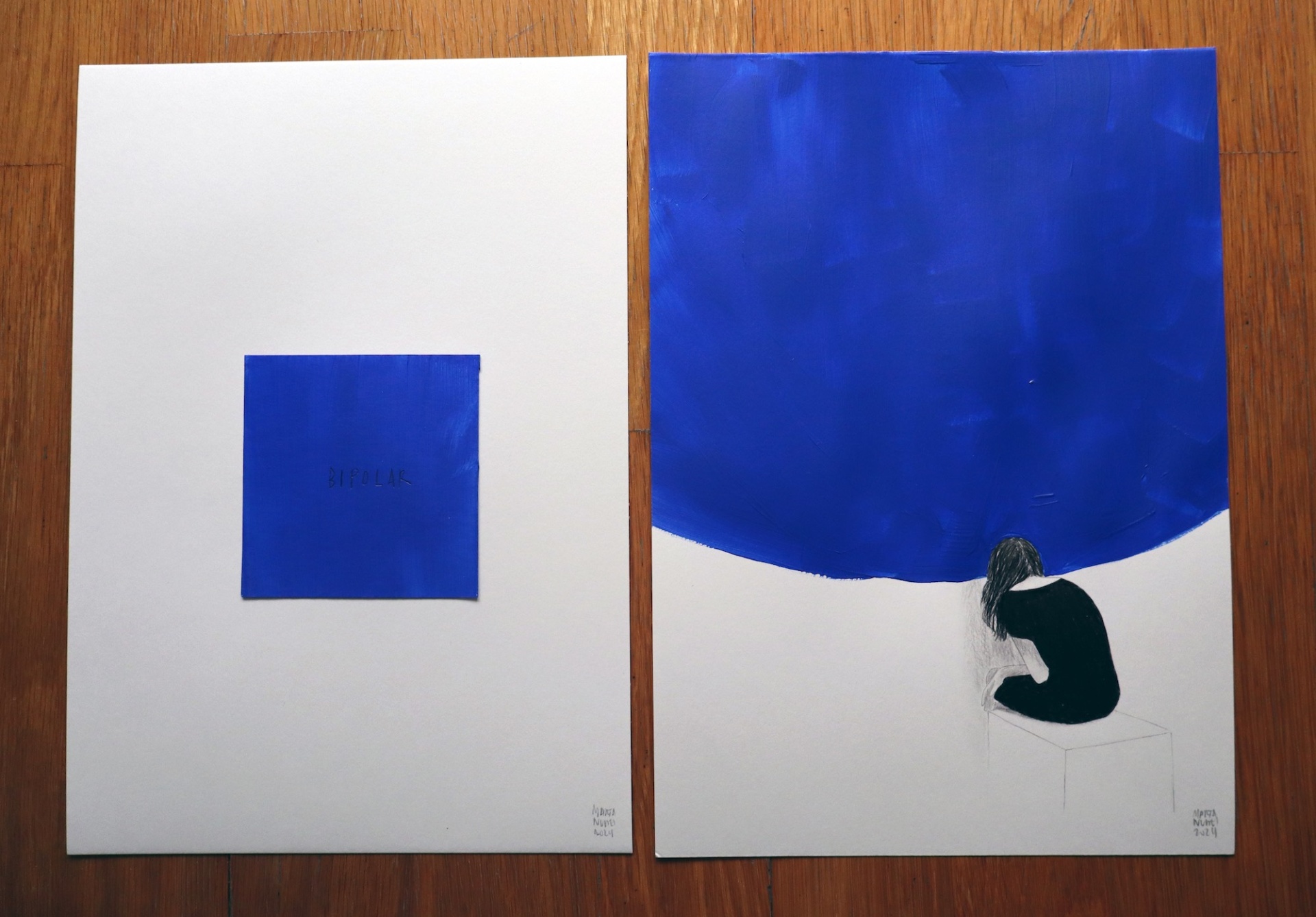 DÍPTICO "BIPOLAR" MARTA NUNES Conjunto de duas obras originais Acrílico e grafite s/ papel Dimensões: A4 (21x29.7cm)