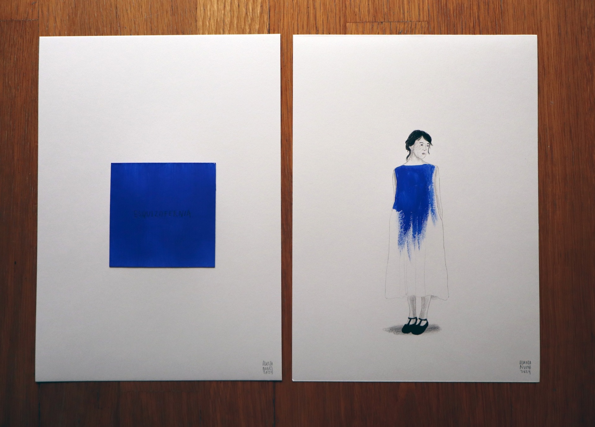 DÍPTICO "ESQUIZOFRENIA" MARTA NUNES Conjunto de duas obras originais Acrílico e grafite s/ papel Dimensões: A4 (21x29.7cm)