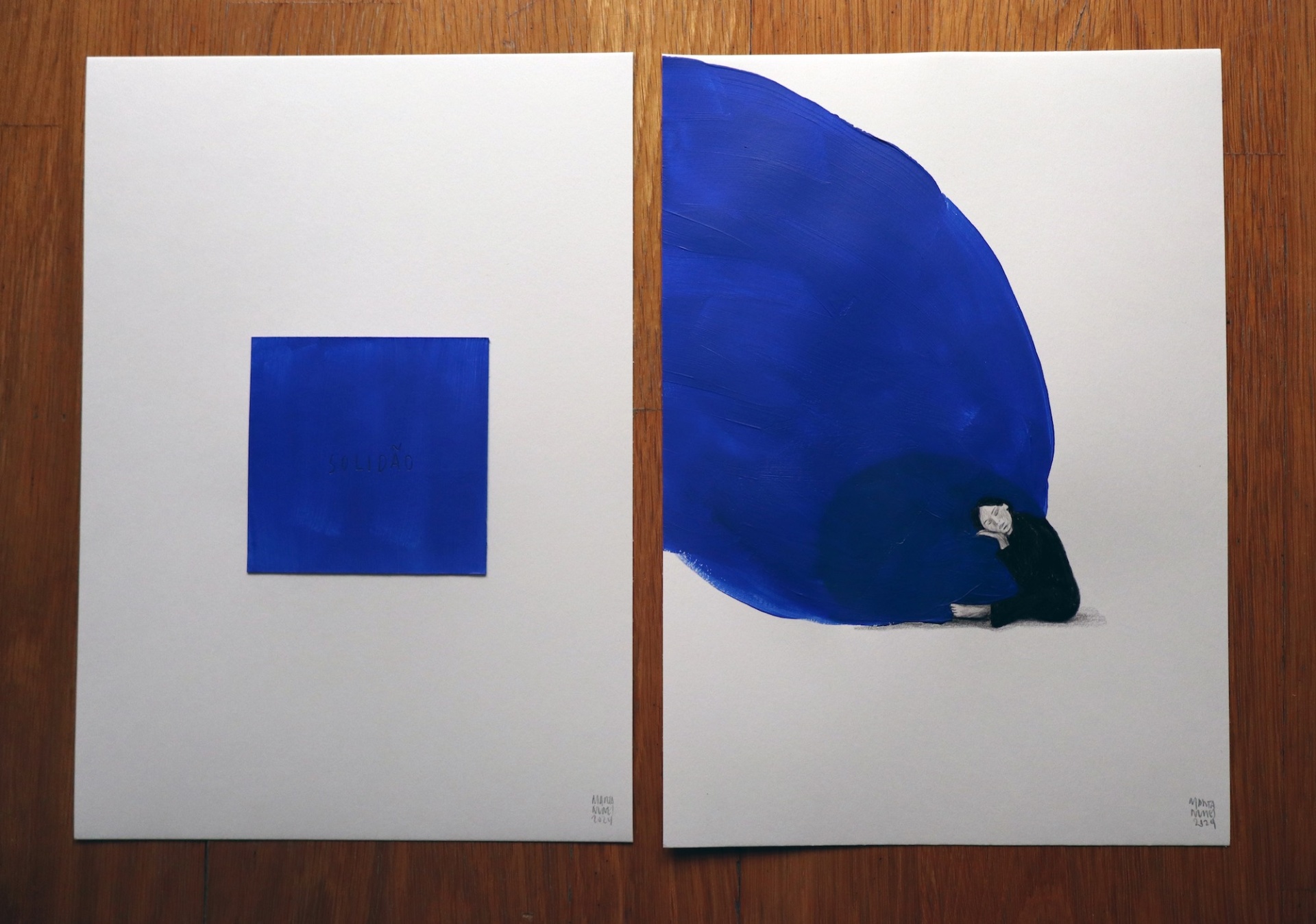 DÍPTICO "SOLIDÃO" MARTA NUNES Conjunto de duas obras originais Acrílico e grafite s/ papel Dimensões: A4 (21x29.7cm)