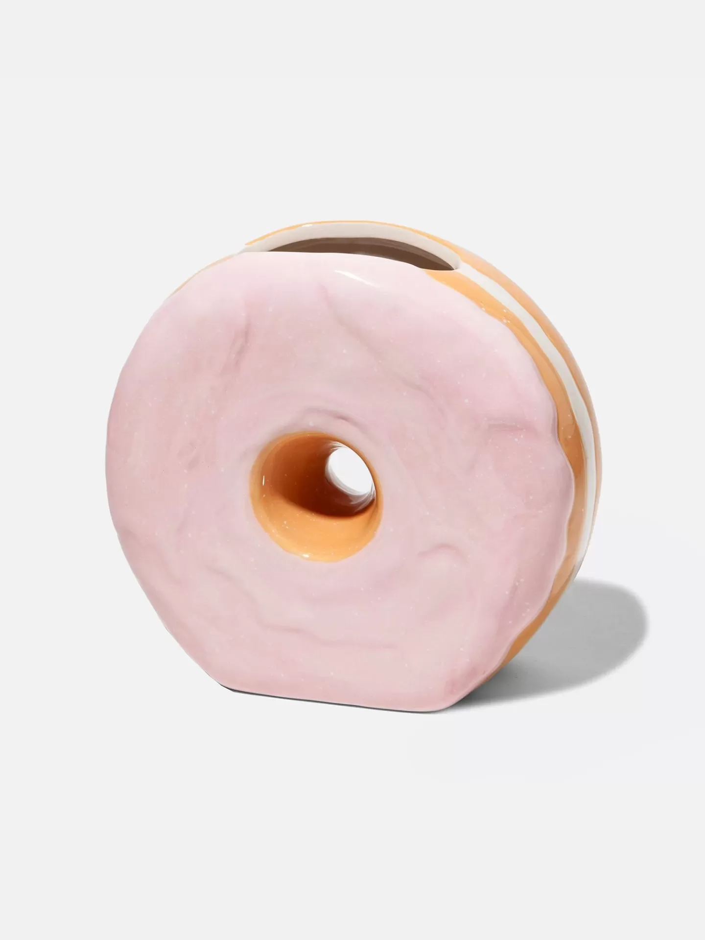 Ceramic vase shaped as a donut, designed to take on the iconic imagery reminiscent of 1950s diner and fast-food icons, infusing your space with an irresistibly delicious retro treat.