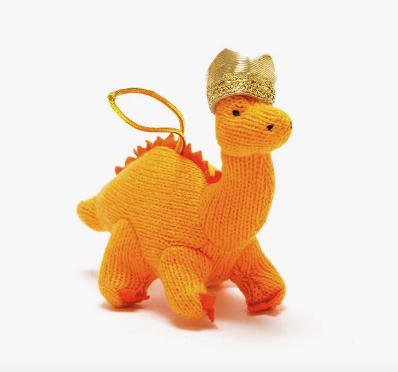 • Pelúcia de dinossauro laranja com coroa dourada