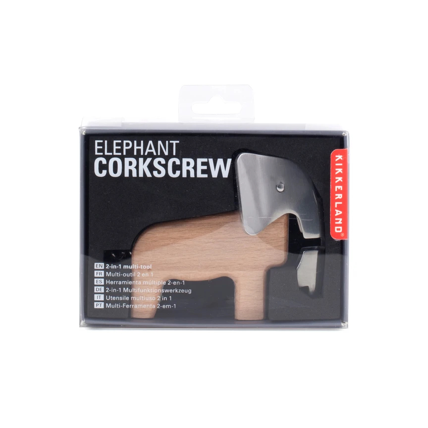 • Furador de cortiça em forma de elefante com madeira e metal na embalagem