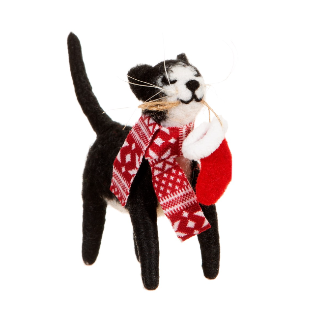 ENFEITE DE NATAL EM FELTRO "CAT WITH STOCKING" SASS & BELLE