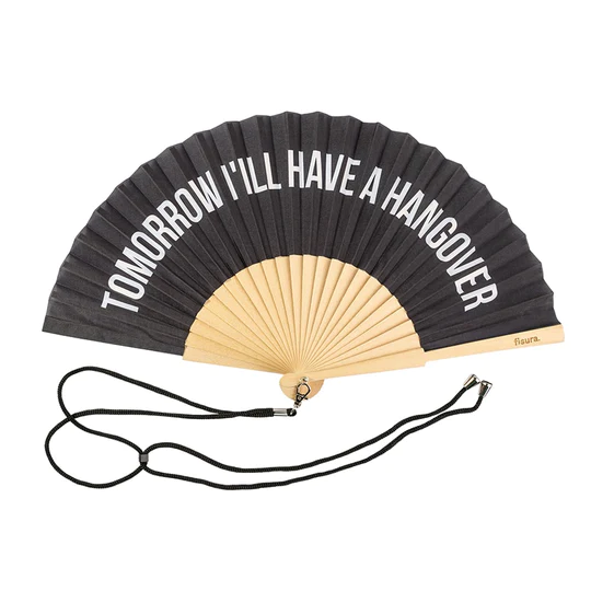 Seja uma tarde de cervejas com os teus amigos, um concerto ou um festival, este leque preto é teu aliado para te manteres fresco enquanto te divertes. Com a sua mensagem "tomorrow I’ll have a hangover", irá recordar-te que apesar de hoje te teres divertido 🍹... amanhã o teu vai paga com uma boa ressaca (mas valerá a pena) 😉