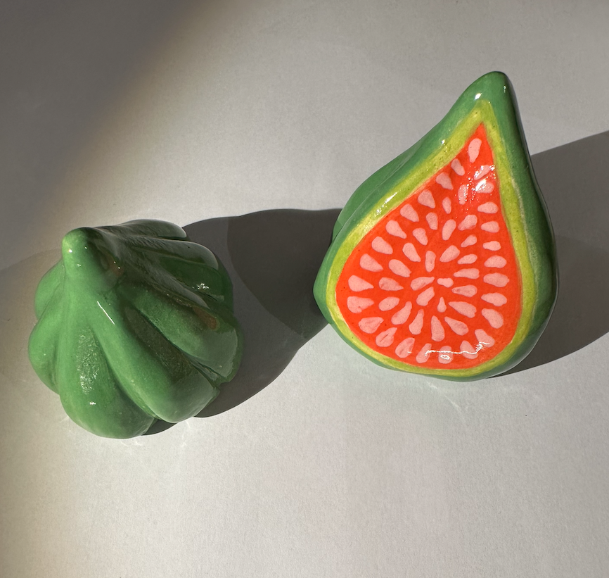 Peças em grés, feitas e pintadas à mao. Dimensoes podem variar.
