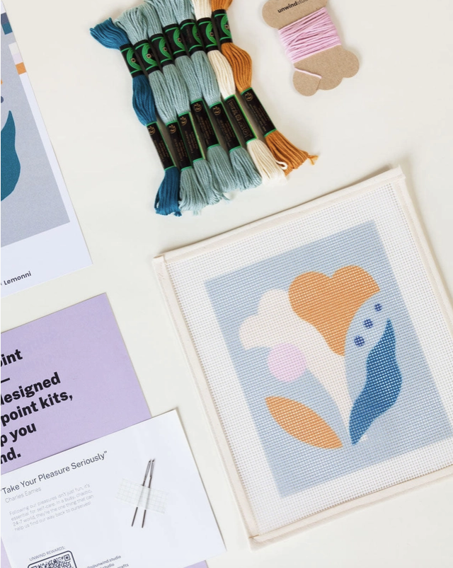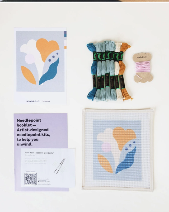 "FLORAL STUDY 1" - BEGINNER NEEDLEPOINT ORNAMENT KIT - UNWIND STUDIO