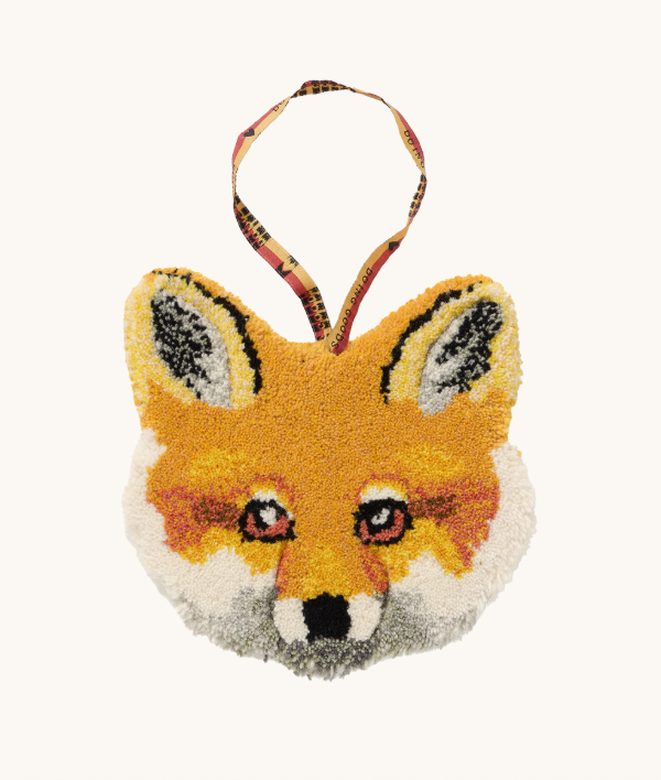 • Bolsa em forma de cabeça de raposa com tecido felpudo e alça estampada