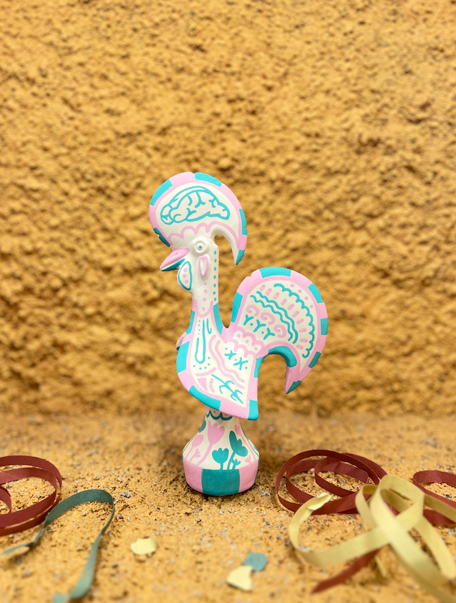 Desde os primórdios da Águas Furtadas, o galo de Barcelos acompanha-nos como símbolo de identidade e experimentação. Os nossos galos coloridos e minimalistas marcaram uma nova abordagem ao artesanato português, fundindo a tradição, a identidade nacional e design contemporâneo. Duas décadas depois, regressamos às nossas origens com uma edição comemorativa dos Galos, onde convidamos os nossos artistas residentes a personalizar galos de Barcelos.