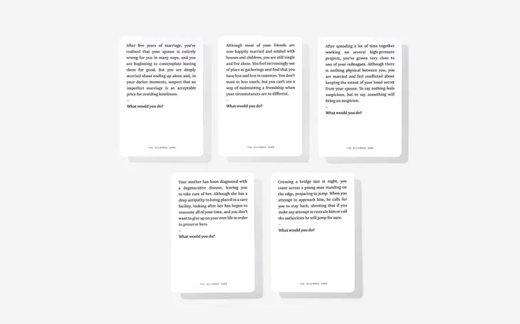 Um jogo de cartas que testa a sua capacidade de resolver 52 dilemas morais do dia a dia. O Jogo dos Dilemas convida-o a flexibilizar os músculos morais e a comparar as suas capacidades de resolução de problemas com as dos seus amigos e familiares. Os jogadores devem propor soluções diferentes para 52 dilemas comuns, usando analogias ou recorrendo a experiências da vida real para explicar as suas respostas. É uma forma divertida e esclarecedora de praticar para os inevitáveis quandários da vida. 52 Cartões | 129mm x 90 mm x 24mm | Cartão de instruções incluído.