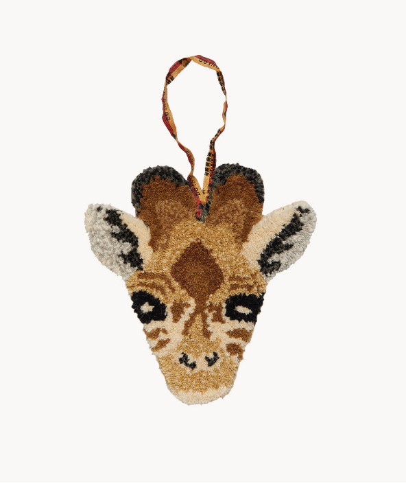 • Adorno cabeça girafa felpudo com fita para pendurar