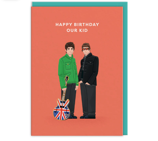 • Cartão de aniversário com ilustração de dois homens e texto em branco