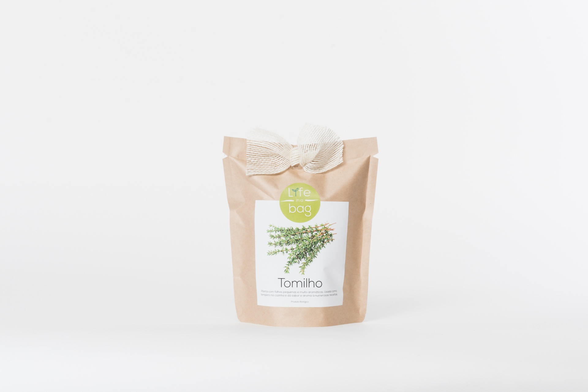 Com este saco pode cultivar Tomilho (Thymus vulgaris) de modo biológico, dentro de casa e de uma forma muito simples. Pode também ser uma alternativa diferente na hora de oferecer um presente.