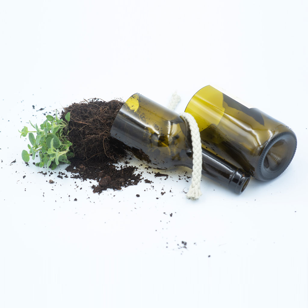 Através de um sistema de rega automática, pode cultivar ervas aromáticas numa garrafa sem ter de se preocupar com a rega.