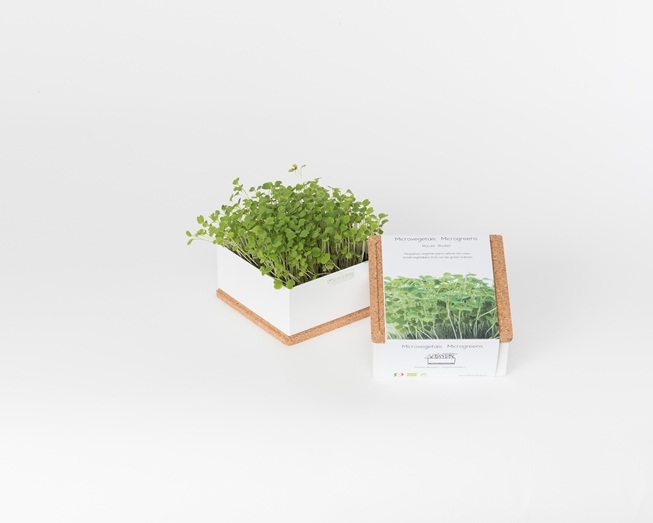 Um kit para cultivar microvegetais que depois de semeados e regados todos os dias, podem ser colhidos ao fim de 10 a 15 dias, assim que apareçam as primeiras folhas (3 a 5 cm de altura).