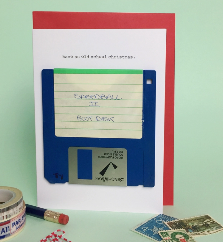 Each greeting card has a unique floppy disk on it. They are all fantastic.