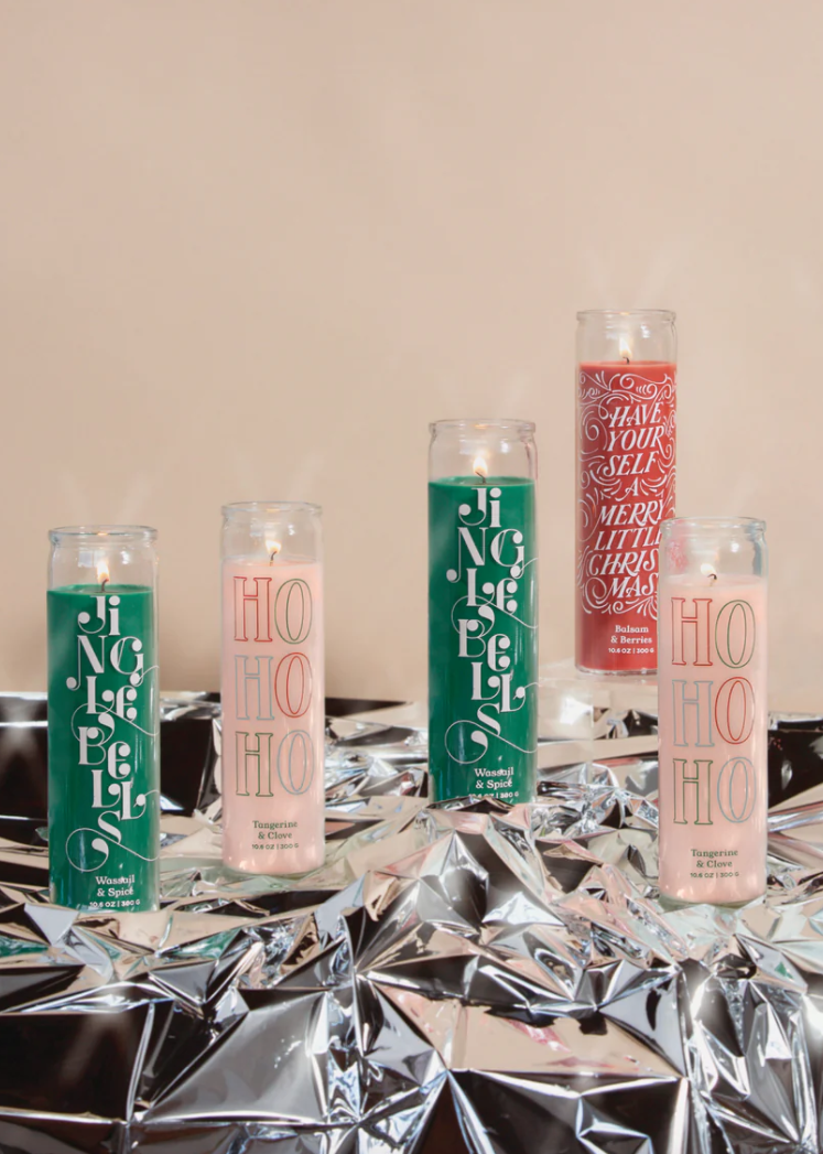 Our fun and modern take on prayer candles, these 300g/10.6 oz clear glass vessels are filled with coloured wax and printed with jolly sentiments. Bring festive fragrances indoors, a candle from our Spark Collection is sure to spark your holiday spirit and leave a lasting smile. Top Notes: Tangerine, Cinnamon, Lemon, Orange Middle Notes: Vanilla, Tonka Bean, Clove Base Notes: Fir Needle, Eucalyptus Product Dimensions: 5.5cm x 20cm