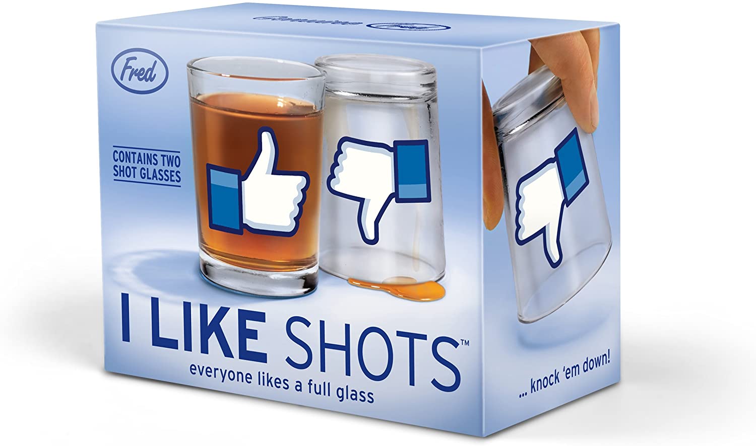 Genuine Fred I LIKE SHOTS is a pretty likable party starter Pour your poison and let it give you the Thumbs Up Knock it back, flip the glass, and you get a decidedly less enthusiastic Thumbs Down It's a drinkable new dimension in social media; like or dislike but either way, you get to drink You get two heavy glass shot glasses in each set; be the most liked thing at the party