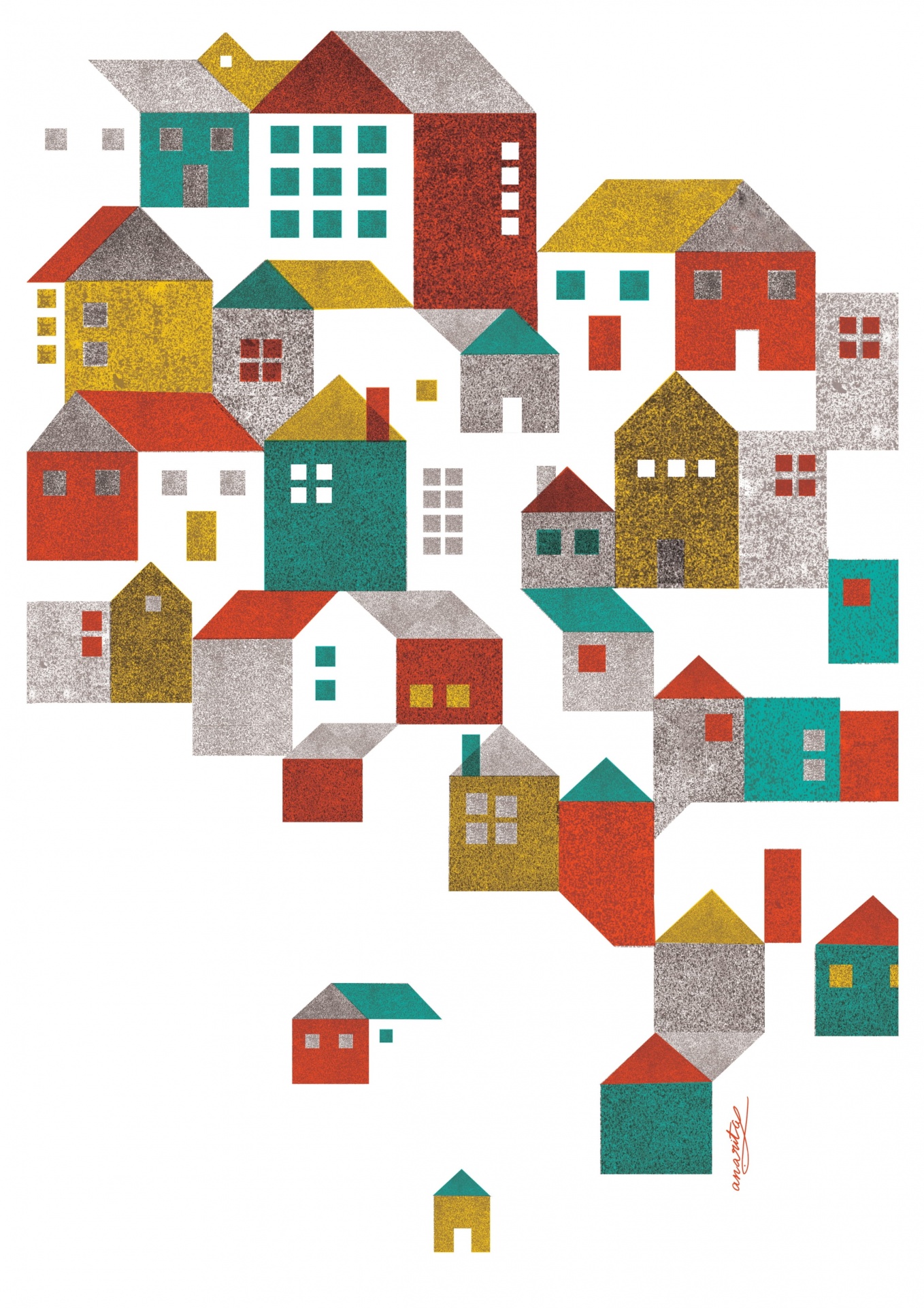 Ilustração de várias casas coloridas sobre fundo branco