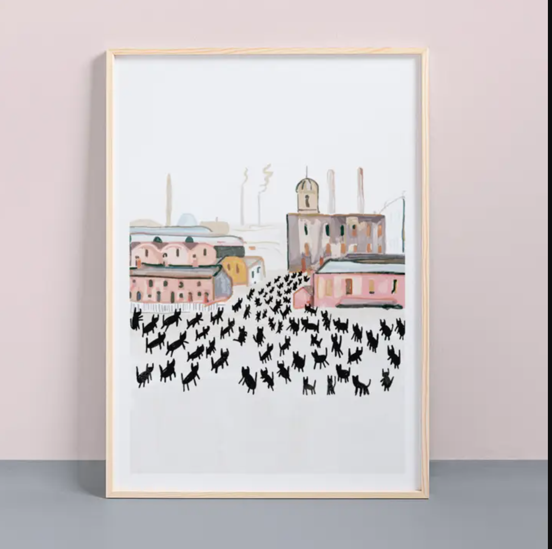 The 'Cats in Art' print is a feline reimagining of some of the greatest artworks of all time. Purr-fect wall art for cat and art lovers alike. Inspired by the work of the artist 'L.S Lowry'.