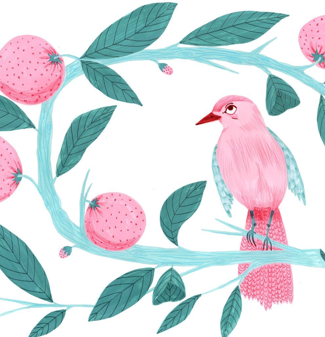 ILUSTRAÇÃO A4 "PÁSSARO NA LARANJEIRA" CARTOLINA LIMÃO
