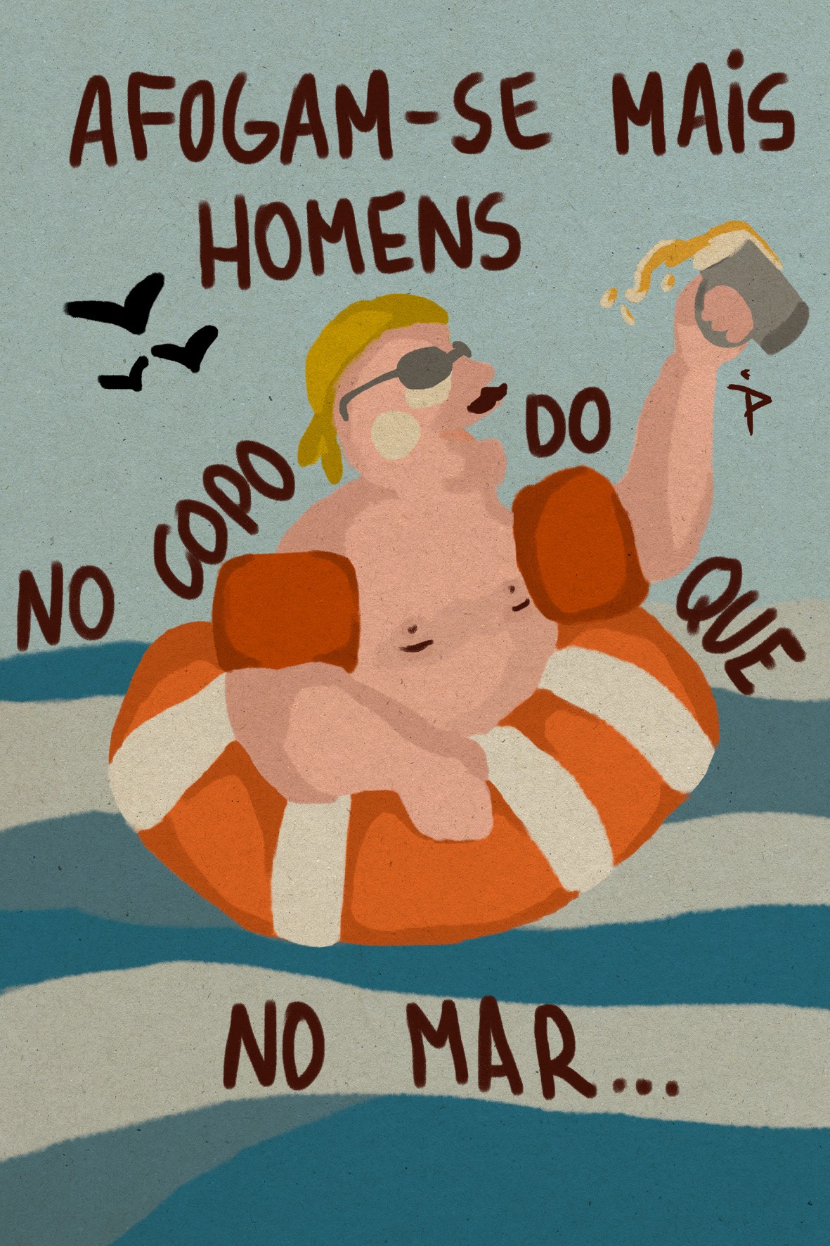 ILUSTRAÇÃO "AFOGAM-SE MAIS HOMENS NO COPO QUE NO MAR" INÊS PEREIRA