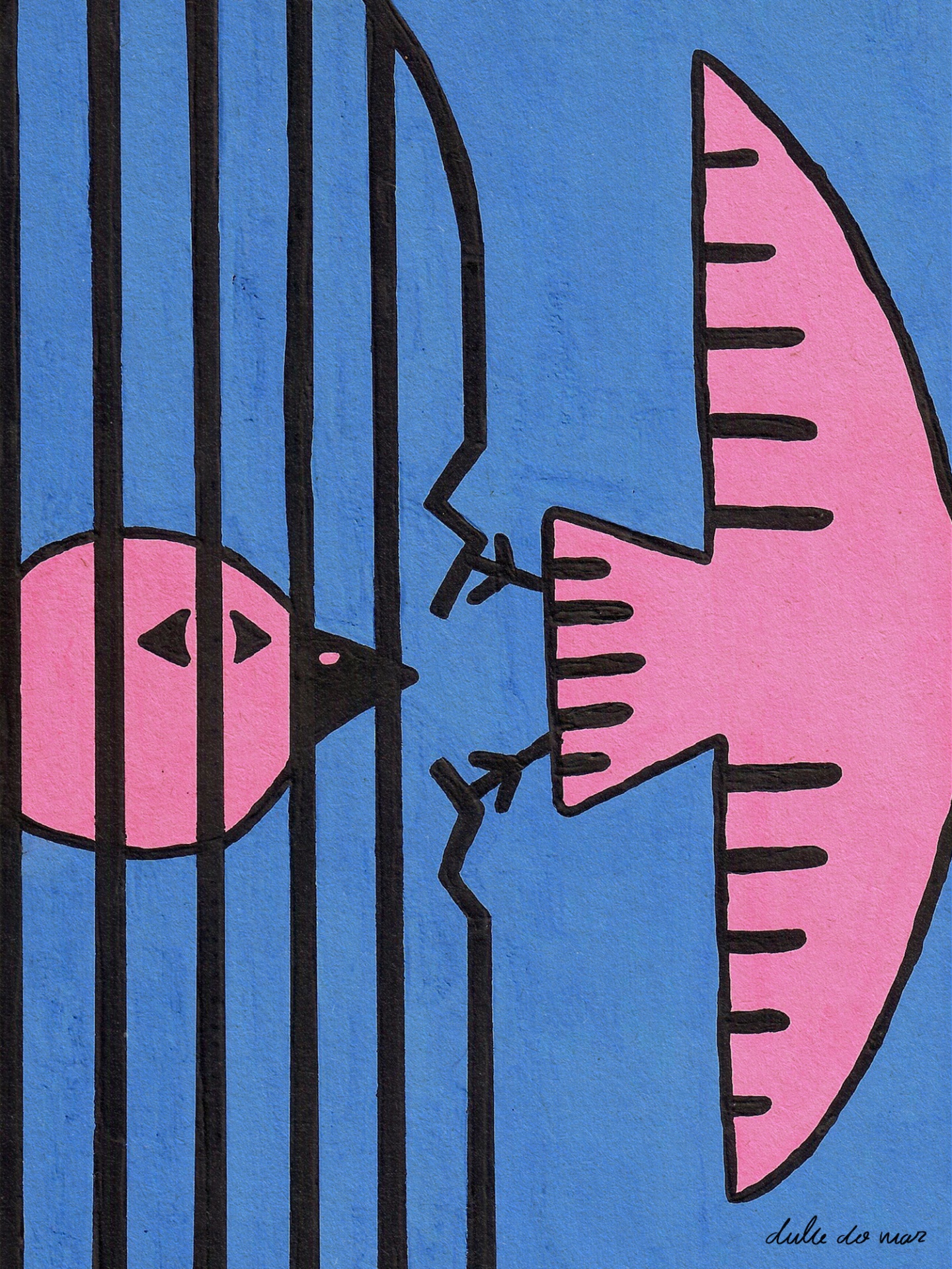 Dulce do Mar é ilustradora e serígrafa, começou o seu percurso na António Arroio e, atualmente, é licenciada em Design de Comunicação pela Universidade Lusófona. A ilustração evoca a sua sensibilidade e ludismo, enquanto que a serigrafia revela o seu lado lúcido e material. Procura utilizar estas disciplinas como armas de comunicação para ajudar o mundo e os seus habitantes, partilhando as suas histórias e dando-lhes voz.