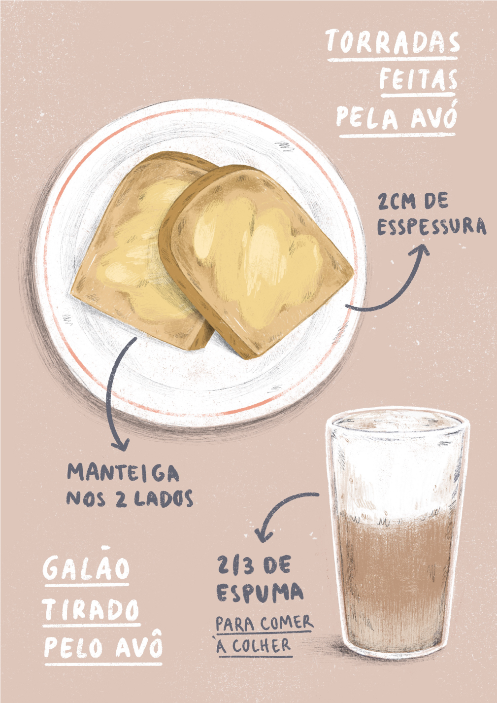ILUSTRAÇÃO "AS TORRADAS FEITAS PELA AVÓ E O GALÃO TIRADO PELO AVÔ" SARA LOU