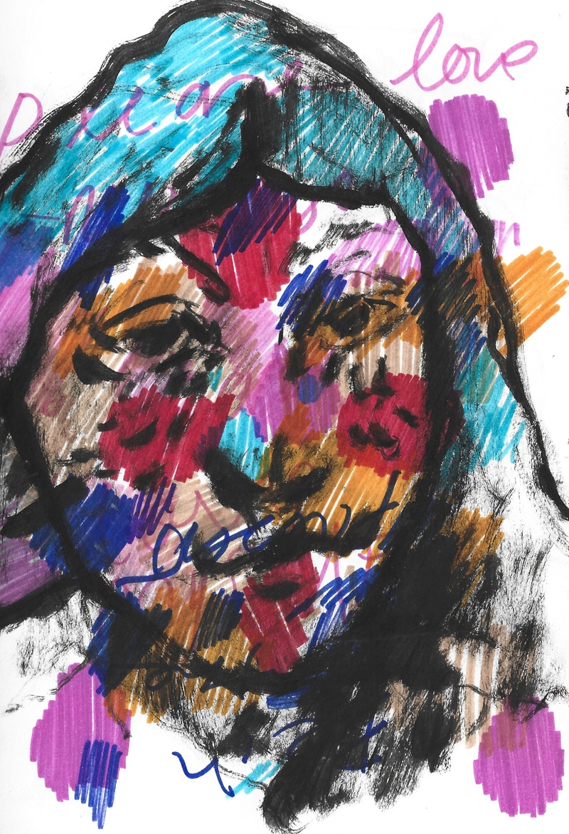 A lembrança da infância. um retrato(auto) de uma boneca que descobre o poder de riscar numa folha de papel com todas as cores possíveis, uma viagem a emoções de uma criança. Lembrancas de Adulta, inspirado num esboço da artista britânica Cecily brown e dates do tinder, que me levaram a descobrir as cores da emoção.