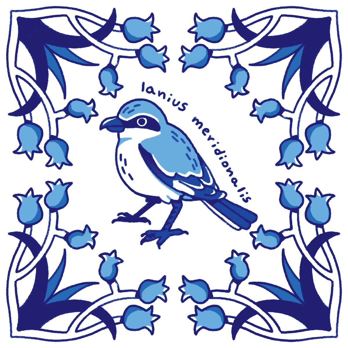 ILUSTRAÇÃO "AZULEJOS DE CASA - LANIUS MERIDIONALIS" MENDI MENDES