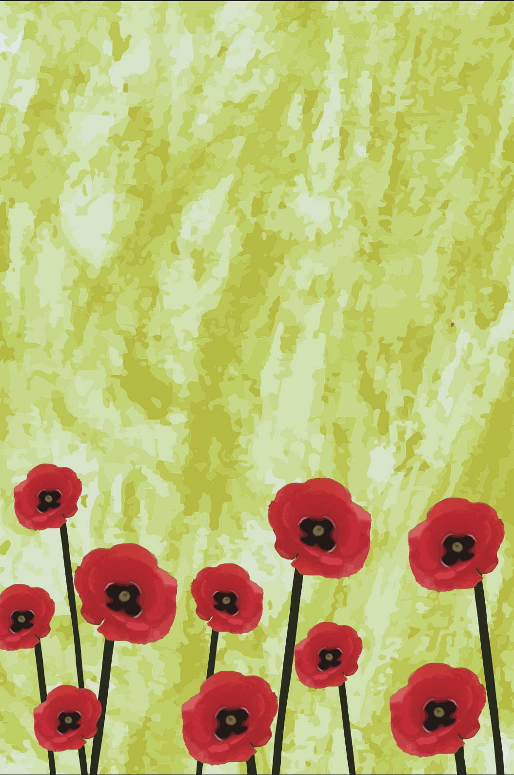 • Flores vermelhas com centro preto em fundo amarelo texturado