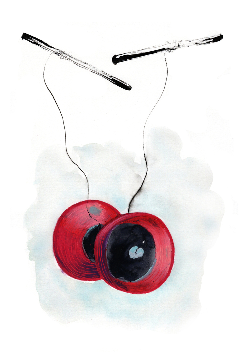 Todos temos uma criança que habita dentro de nós, apenas mudam os brinquedos e brincadeiras. Decidi ilustrar o Diabolo (o ioiô versão pró) como memória dos tempos de infância e para a "infância" adulta, os malabarismos podem ser feitos sem brinquedos, a adrenalina começa com pequenos toques. No final, todos temos direito ás brincadeiras.