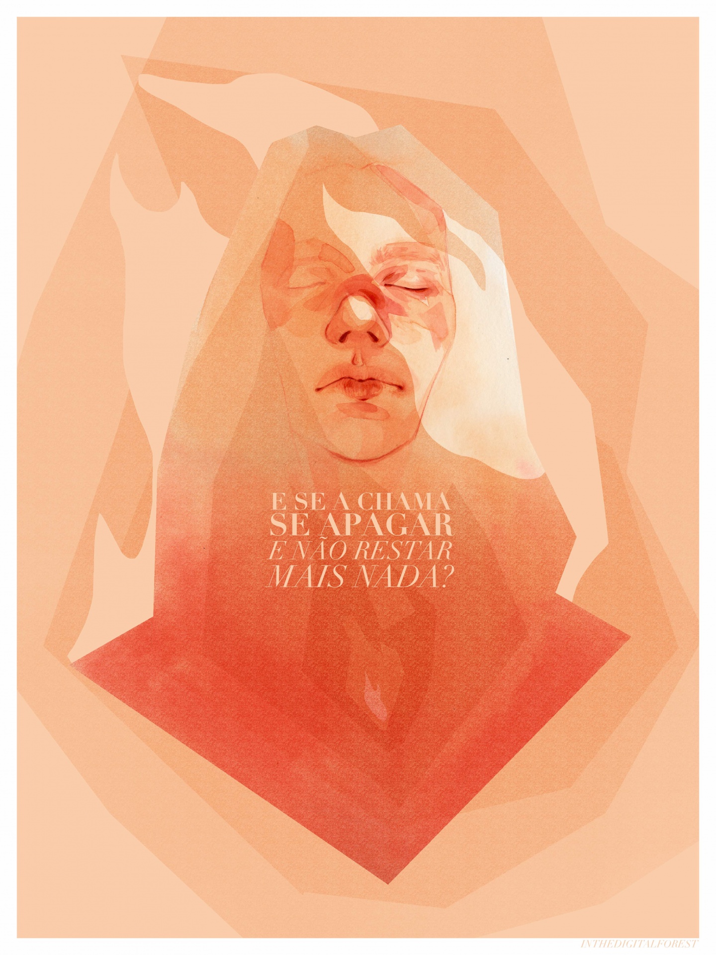 • Retrato artístico em tons laranja com texto em português centralizado na imagem.