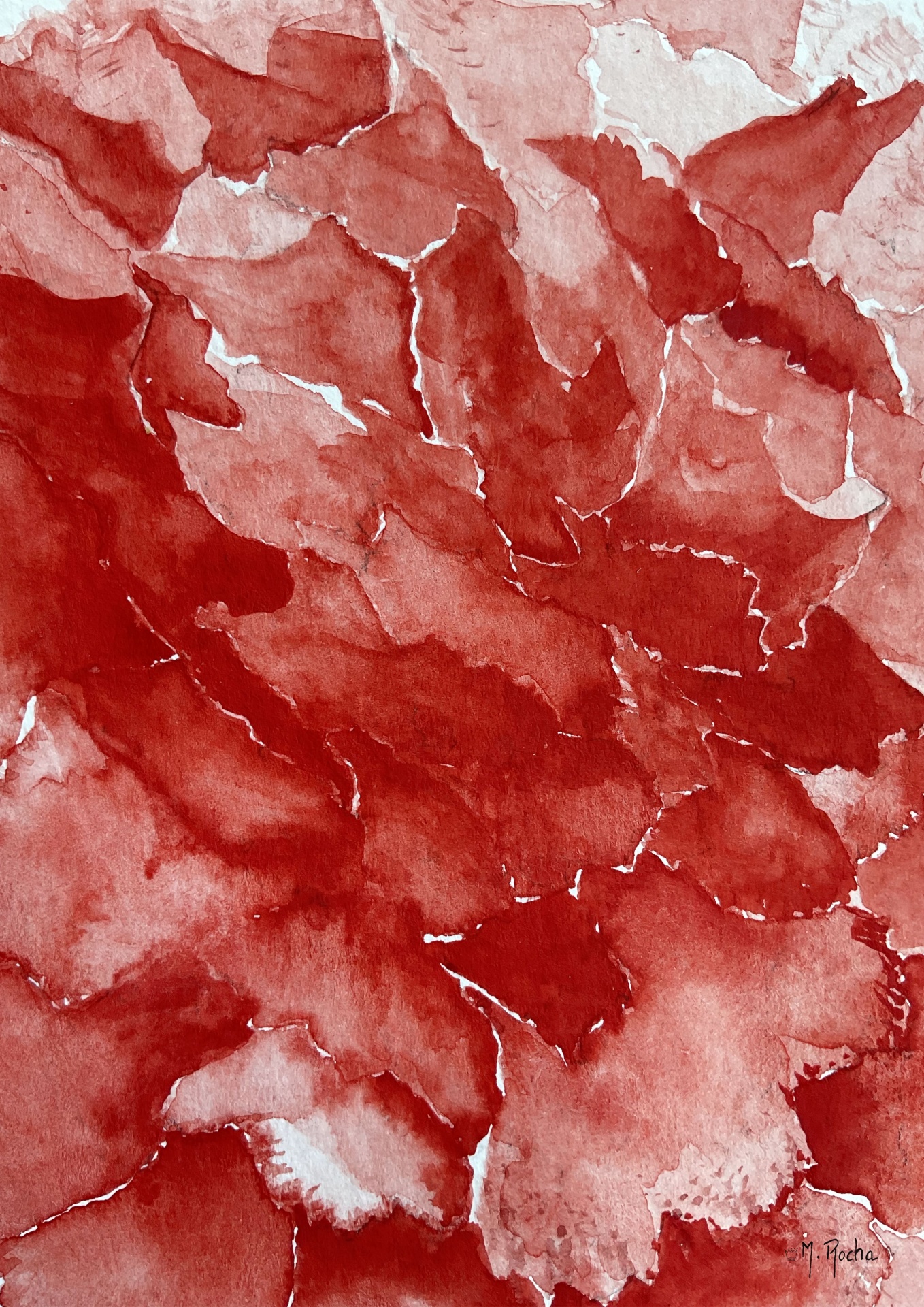 • pintura abstrata vermelha em aquarela assinada por M. Rocha