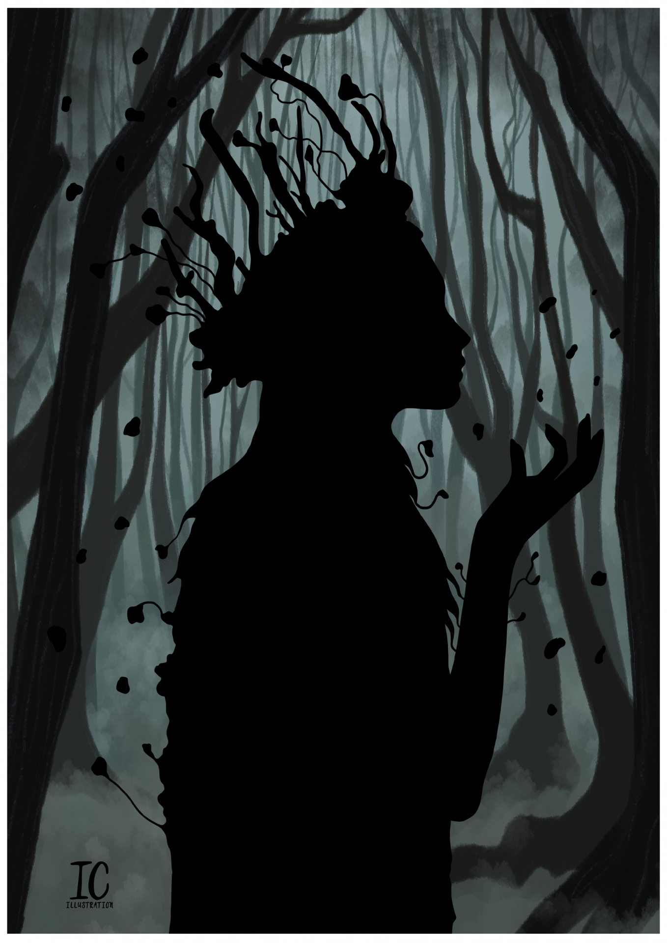 Procurei para este trabalho representar o primeiro dos medos, o escuro. A partir daí trabalhei à volta deste conceito, explorando-o mais a fundo até encontrar a floresta. A partir daí foi um trabalho de integrar a ideia de um vulto neste contexto até chegar ao resultado final.