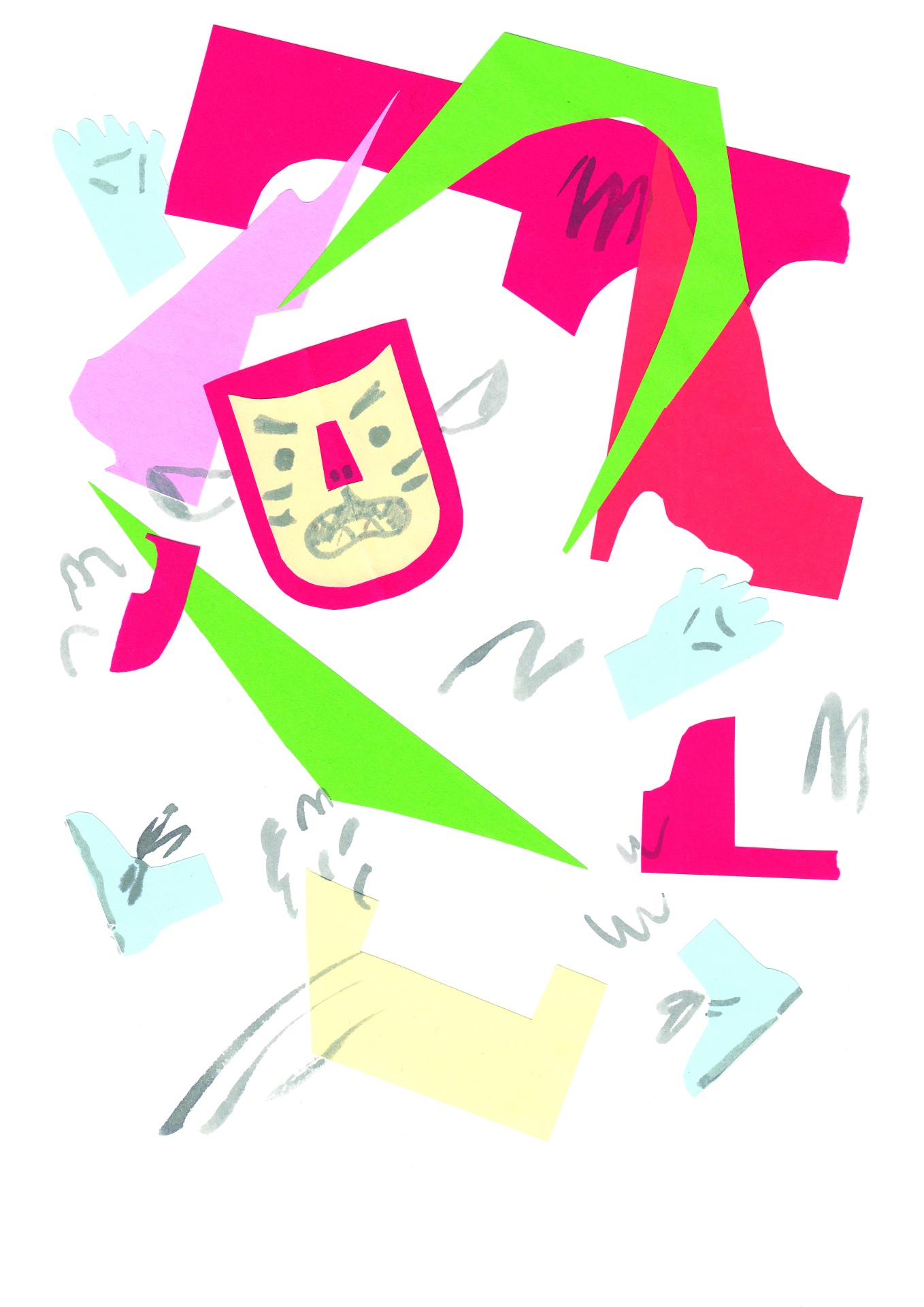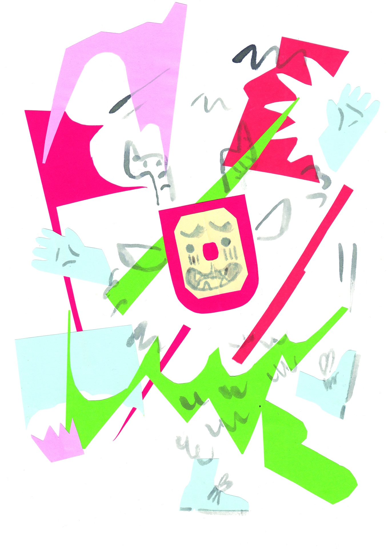 • Desenho abstrato colorido com rosto e formas recortadas
