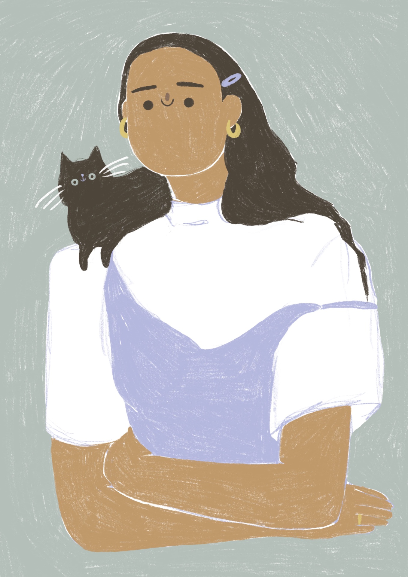 Ilustração de mulher com gato preto no ombro