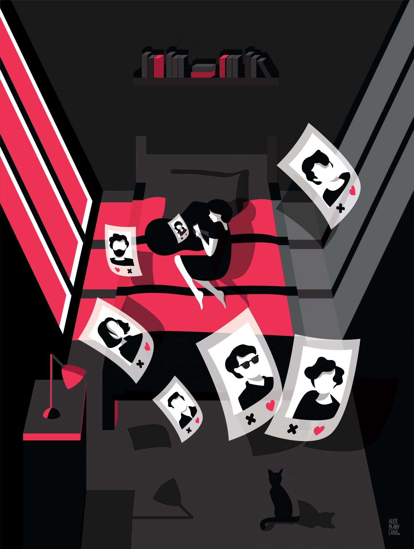 Alice, Lisboa. Iniciou-se na ilustração infantil em 2012, formando-se na área na Faculdades de Belas-Artes de Lisboa. Em 2013, começa a carreira profissional como designer gráfico na agência criativa Havas Design+, onde participou em inúmeros projectos para marcas nacionais e internacionais. Apesar da área da publicidade e design ser o seu ganha-pão diário, Alice continua a explorar as possibilidades da ilustração e pintura digital.