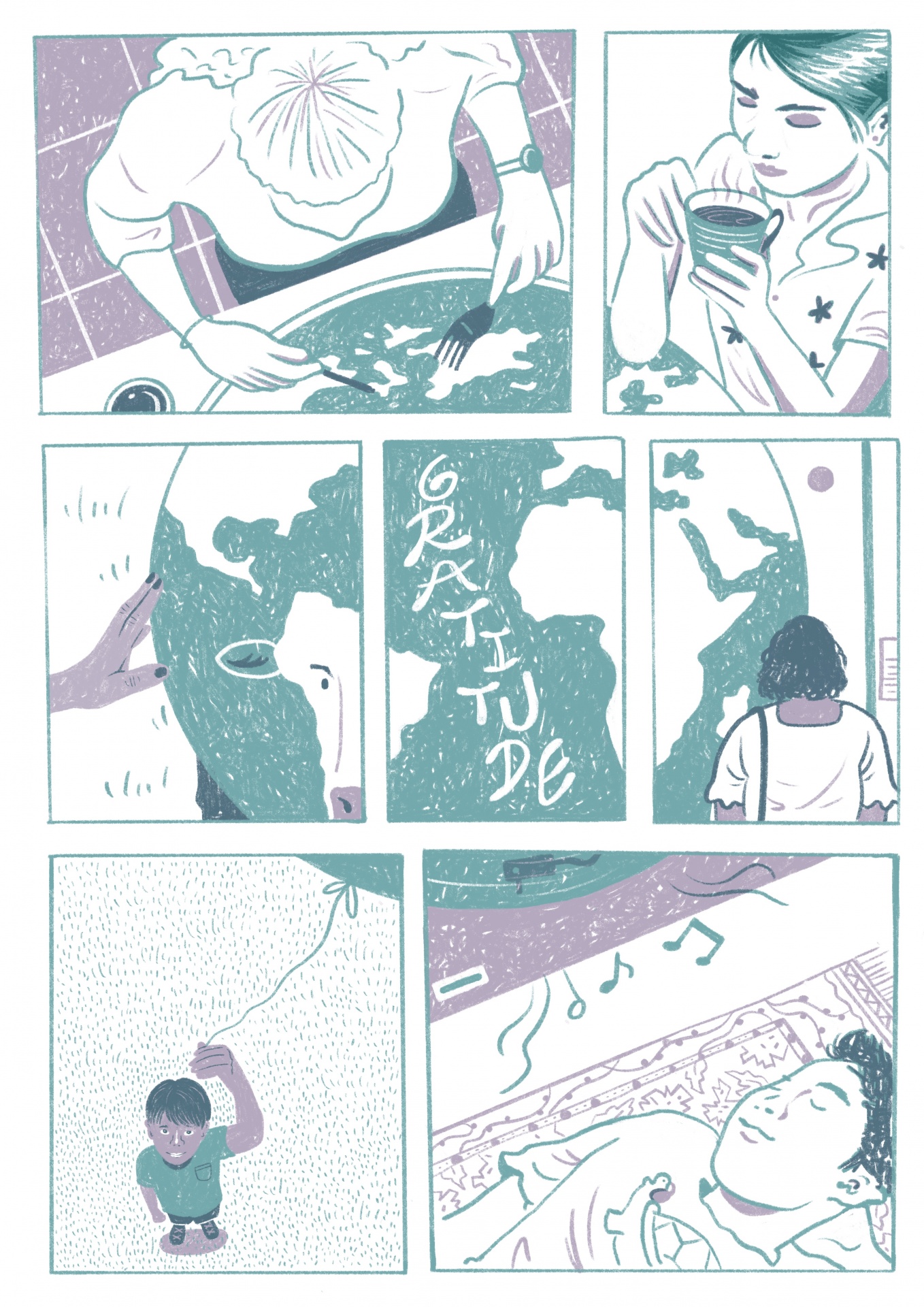 Ilustração integrante da primeira zine coletiva da Águas Furtadas, "O pequeno livro da gratidão", de curadoria de Ruben Ramires.