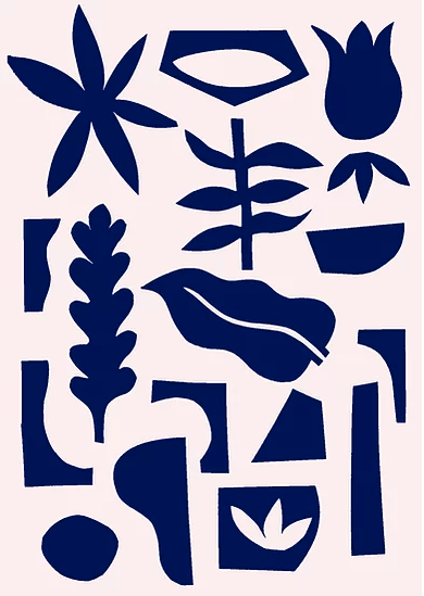 • Padrão abstrato azul escuro com formas geométricas e orgânicas sobre fundo claro