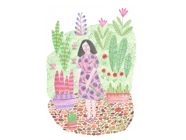 Diana works between illustration, drawing, painting and mixed techniques. She likes to explore the relation between colors and black and white, tex- tures and patterns, and different materials.