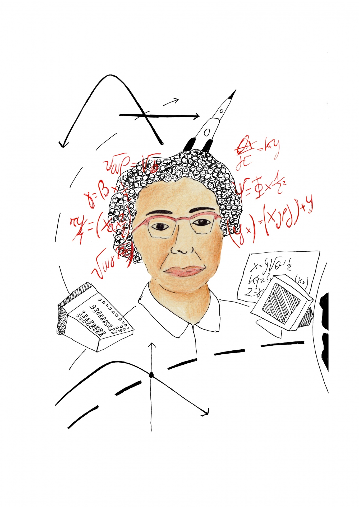 Katherine Johnson (1918-2020) foi a primeira mulher afro-americana a trabalhar para a NASA na área da computação . Katherine optou pela matemática, com interesse em pesquisa na área, um caminho com muitas portas fechadas para negras na época. E fez contribuições fundamentais para a navegação astronômica e exploração espacial dos Estados Unidos. Lutou e conquistou o seu espaço como mulher e como mulher de cor , num meio que ainda hoje não é muito aberto às mulheres: o meio científico. Nem quero imaginar o que era naquela altura! A quis representar olhando em frente com força, olhando direto nos olhos das pessoas, como sempre viveu. E este é o desejo que tenho para todas as mulheres.