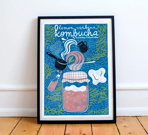 • Pôster ilustrativo sobre kombucha de verbena de limão emoldurado