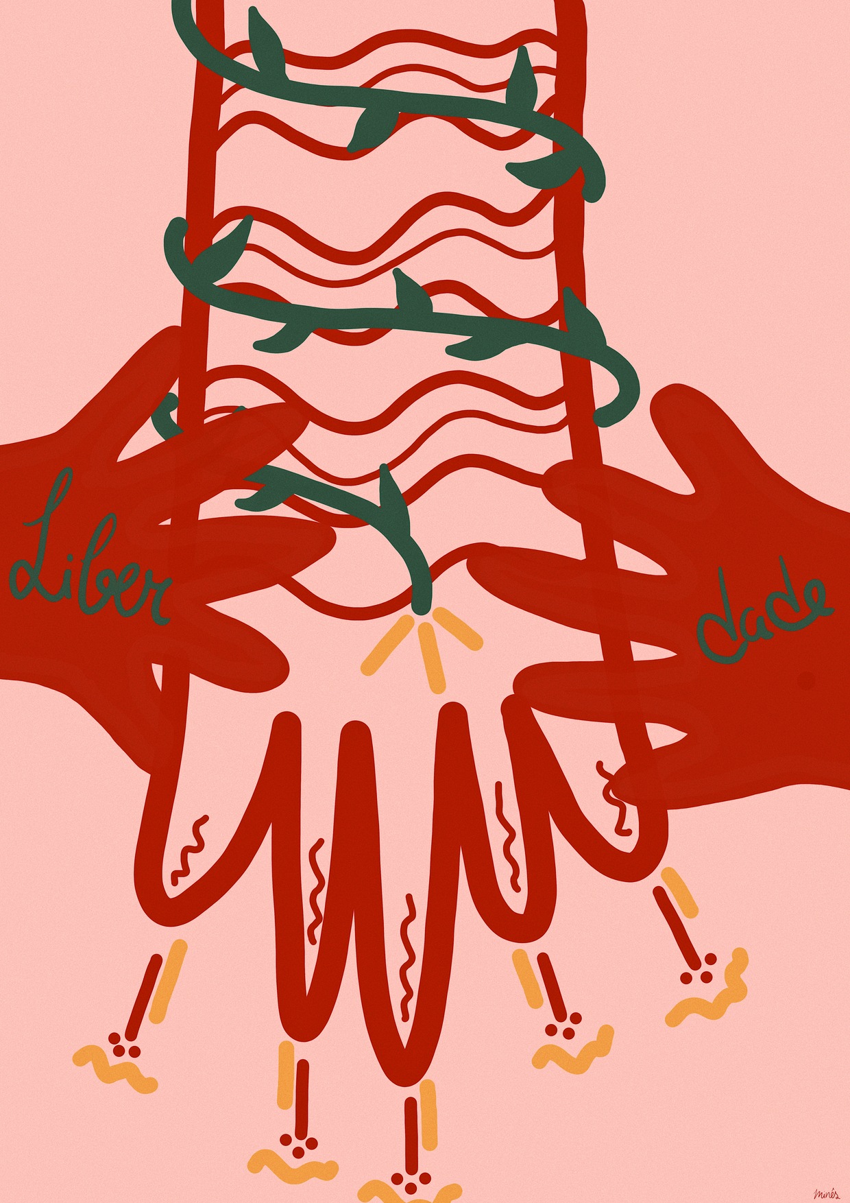 Lembro-me de ver a proposta do Open Call no dia em que foi lançado e de tentar forçar a minha inspiração: nada me ocorreu. Estava a prender, a enjaular a minha própria liberdade criativa. No dia seguinte, repentinamente, a minha liberdade criativa guiou-me, inspirou-me e levou-me a conseguir produzir e criar uma ilustração de que me orgulho. O ato em si do conceber arte de mim para mim, de mim para o mundo foi libertador, e foi de encontro precisamente ao tema do Open Call. O 25 de Abril para mim é liberdade, uma afirmação da mesma, tal como a minha criatividade o é. Há sempre mãos que se unem e libertam o que jamais deveria ter sido preso.