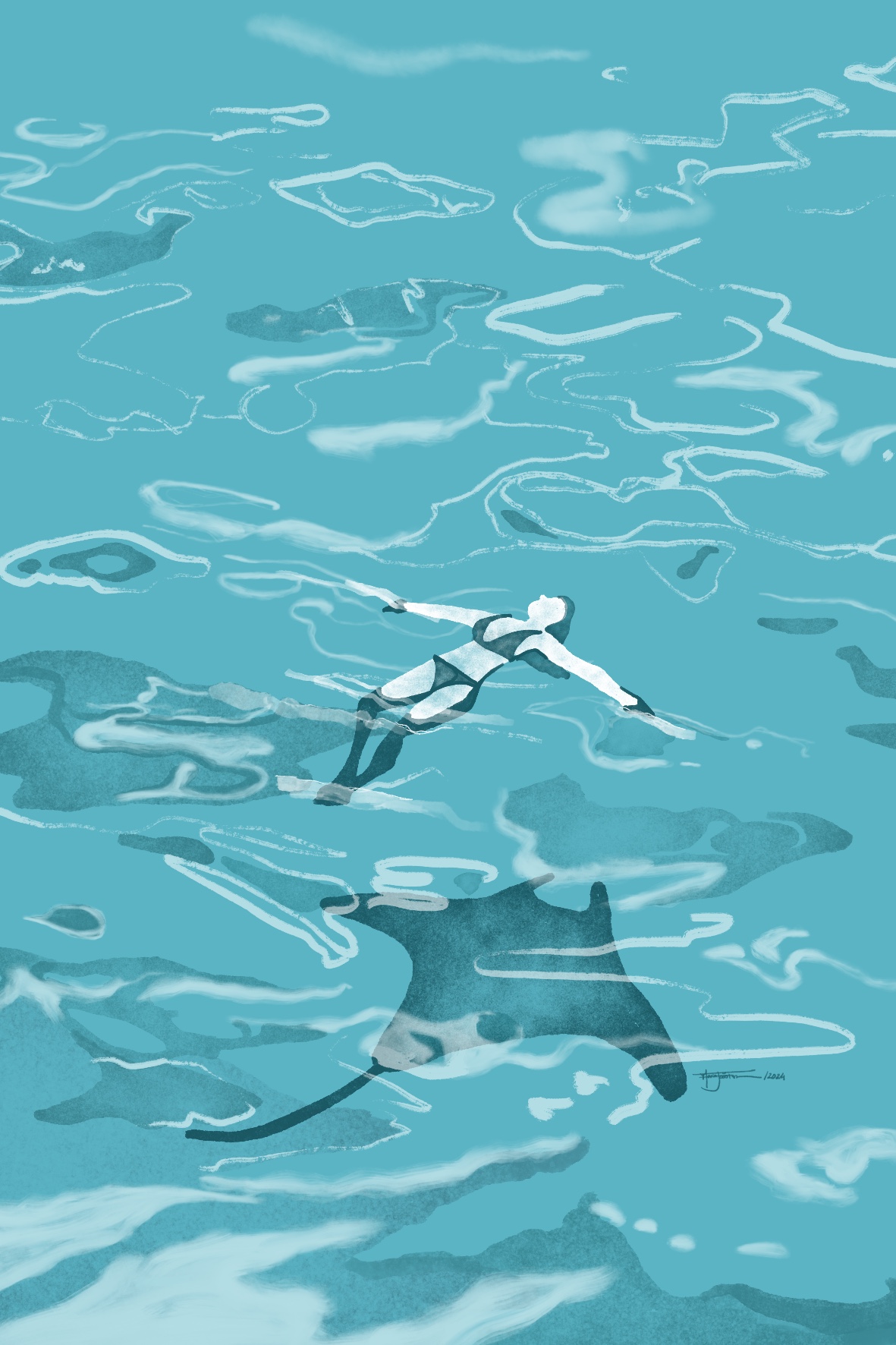 Ilustração selecionada da Open Call "Solta o teu animal e leva-o à praia"