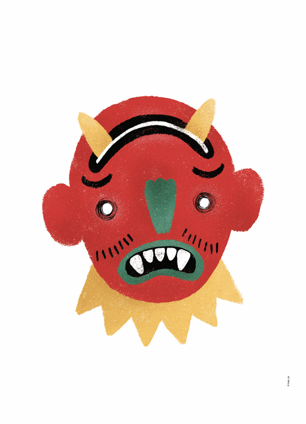 • Ilustração de máscara vermelha com chifres e colar amarelo